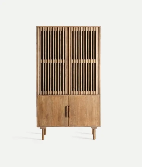 Armario de cuatro puertas en madera de mango natural. Estilo nórdico contemporáneo.