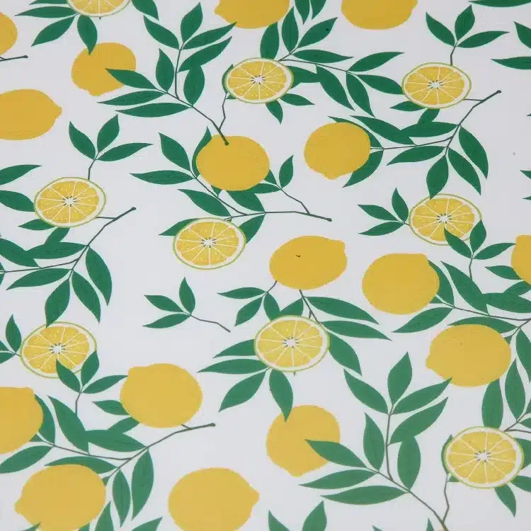 Fabricado en melamina blanca con motivos de limones en color amarillo y verde.