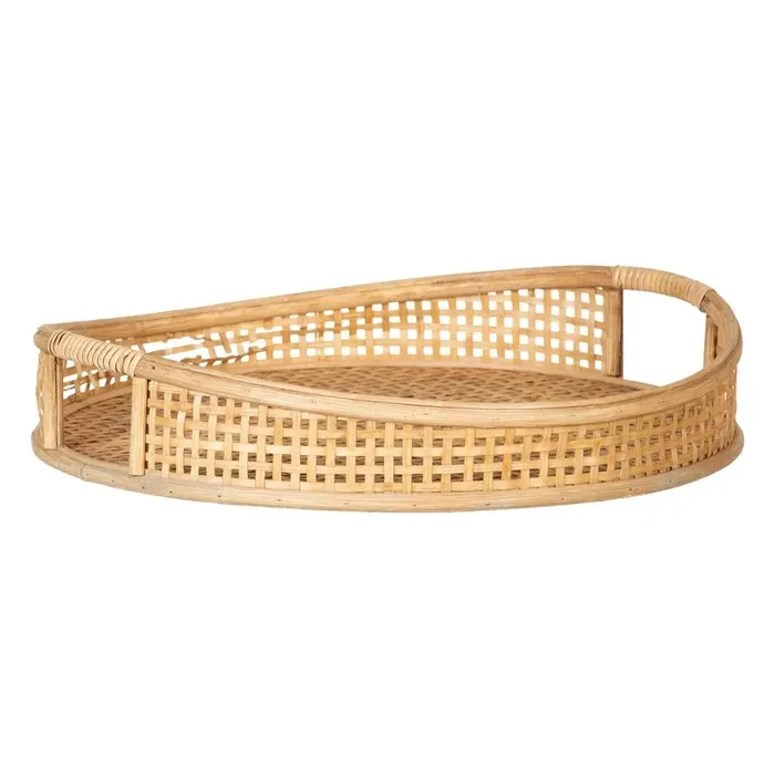 Bandeja redonda en fibra de bambú natural trenzado.