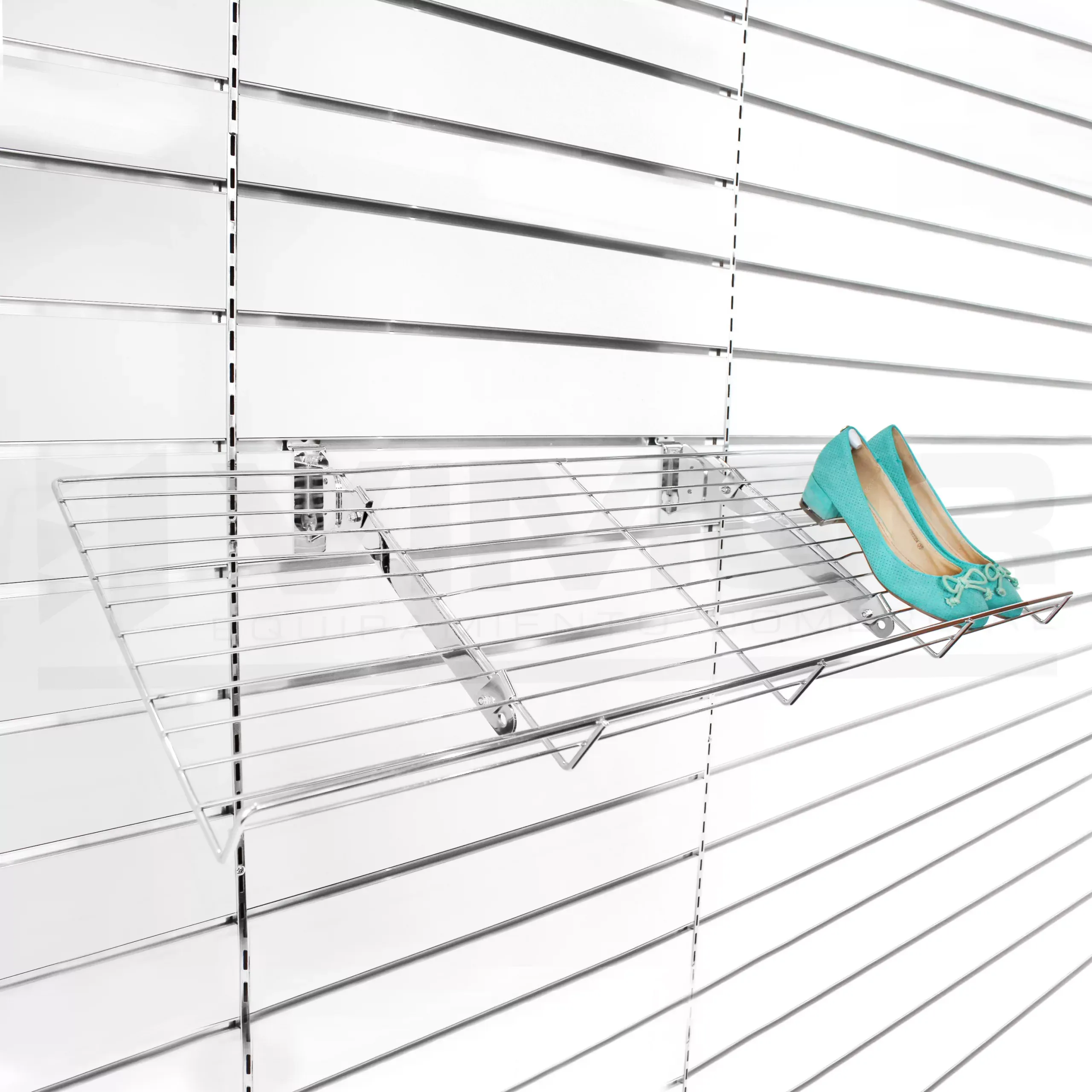 Bandeja rejilla con tope para sistema lama, ideal para calzado. Color cromado.