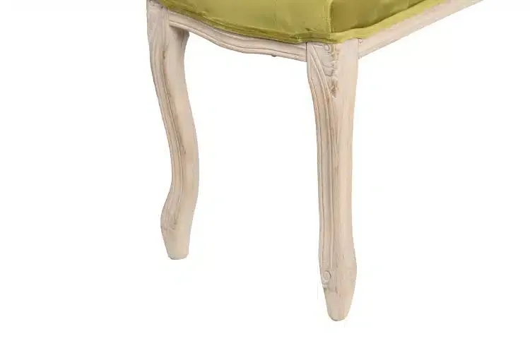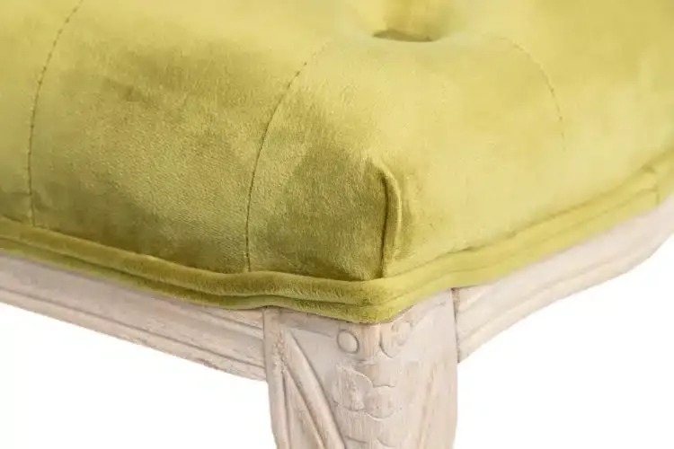 El asiento muy confortable está relleno de foam y tapizado con la técnica capitoné en elegante terciopelo verde.