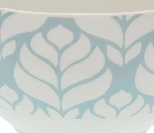 Fabricados en cerámica blanca. Combina su interior blanco con el exterior en color azul turquesa y motivos blancos.