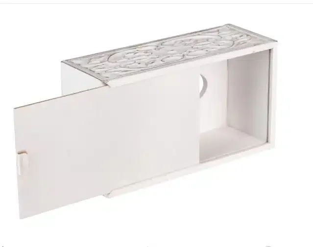 Caja Pañuelos Madera Blanca Tallada Shabby Chic (25x14x10 cm)