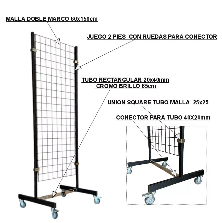 Carro SQ malla de 60x150cm y juego de pies de 25X25mm