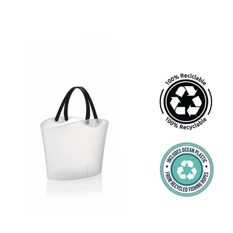 Cesta de 6litros de capacidad exclusivo y moderno fusionando estética y funcionalidad. Además, está fabricada con un 25% de material reciclado y es 100% reciclable. Su versatilidad lo convierte en un diseño perfecto para distintas tipologías de tienda: gourmet, perfumería, parafarmacia….