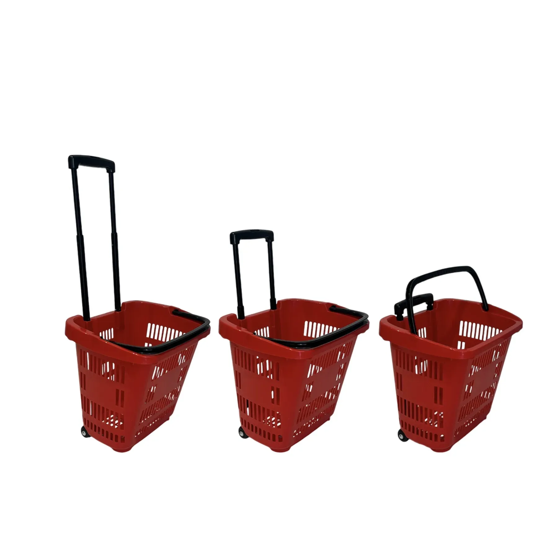 Cesta con ruedas y asa en color negro de 34litros. Cesta color rojo con ruedas.