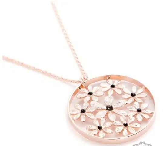 Colgante medallón flores oro