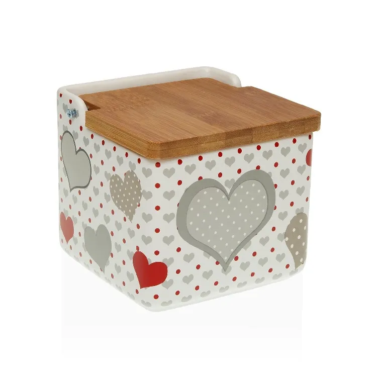 Dosificador Cocina Cerámica Blanca Corazones Grises y Rojos, Vintage (10x9x18cm)