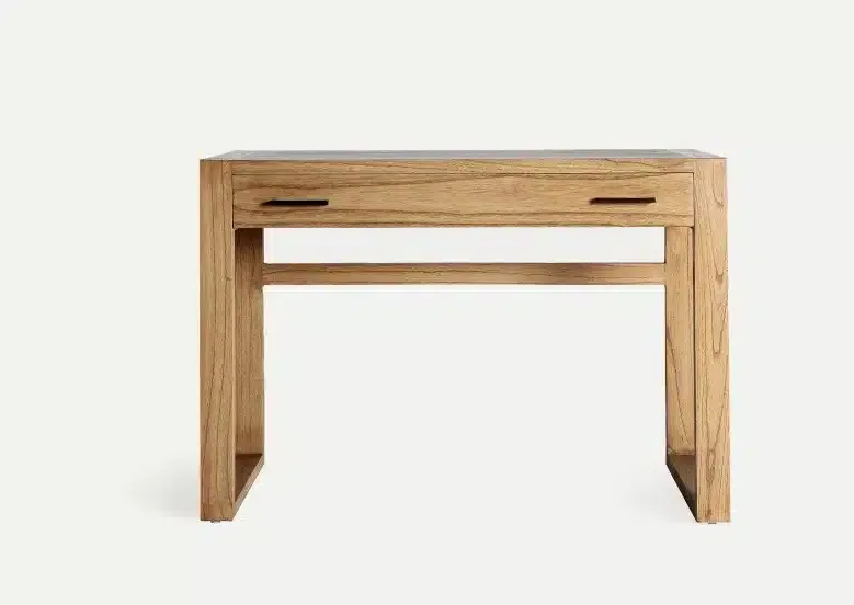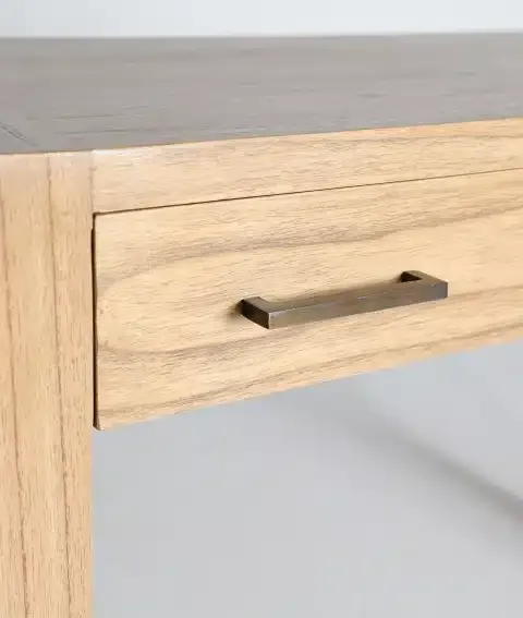 Escritorio de un cajón abatible en madera maciza de mindi acabado en natural. Estilo nórdico.