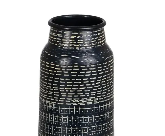Jarrón Aluminio Negro Grabados Geométricos Mikonos ( 9dx31 cm)