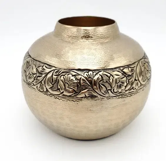Jarrón aluminio oro grabado.