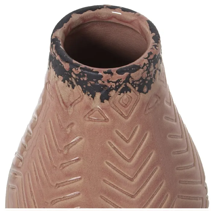 Jarrón Cerámica Rosa Esmaltada Grabados Geométricos (15dx21 cm)