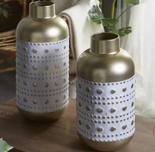 Jarrón Metal Grabado Balnco y Dorado Mikonos (16dx30cm)