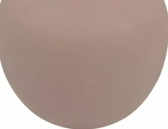 Con forma de ánfora, está fabricado en metal rosa palo y acabado rugoso.