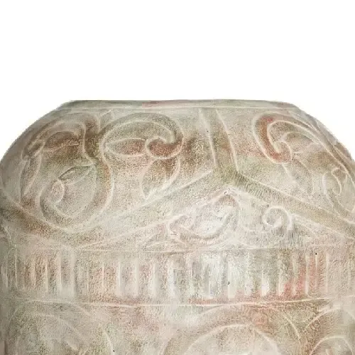 Jarrón en metal con grabados, acabado en marrón y verde efecto envejecido