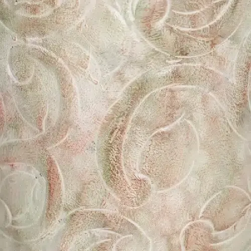 Jarrón suelo  en metal grabado tonos verdes y marrones.