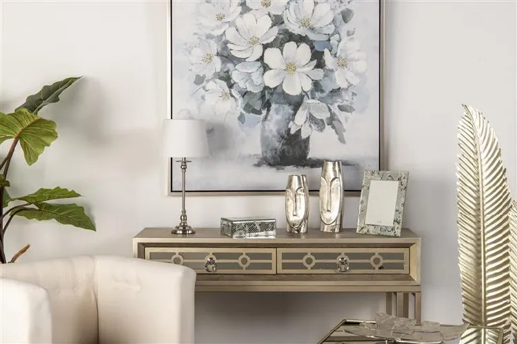 Lámpara Mesa Blanca Plata Eva, Clásica (23dx49 cm)