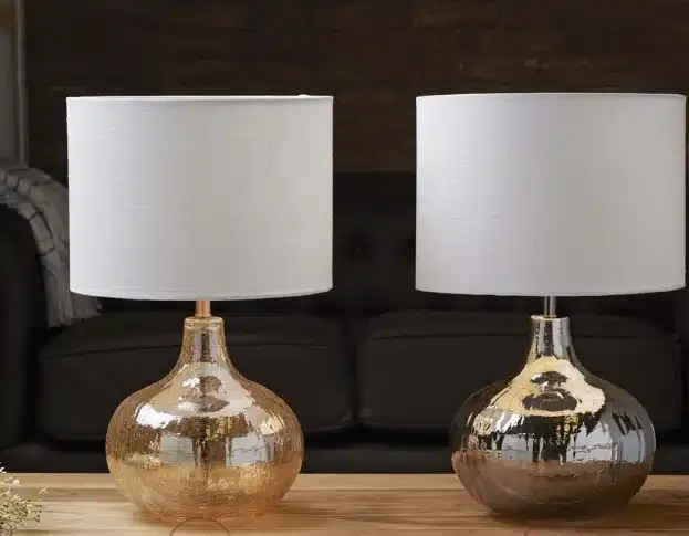 Da a tu casa un toque de sofisticación con nuestra lámpara Aliz en cristal craquelado ámbar.