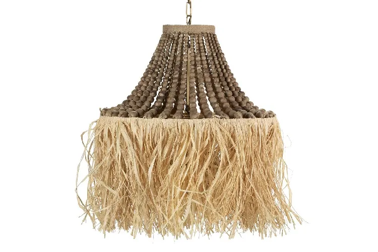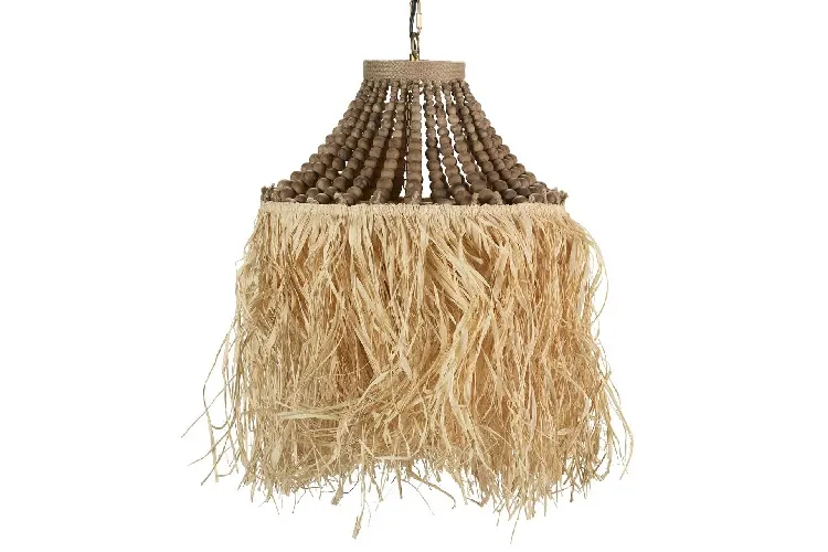 Lámpara Techo Cuentas Madera y Flecos de Rafia Eleonora,Rústica (60dx66m)