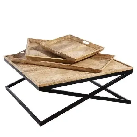Mesa centro-bandeja madera metal(120x120x55cm)