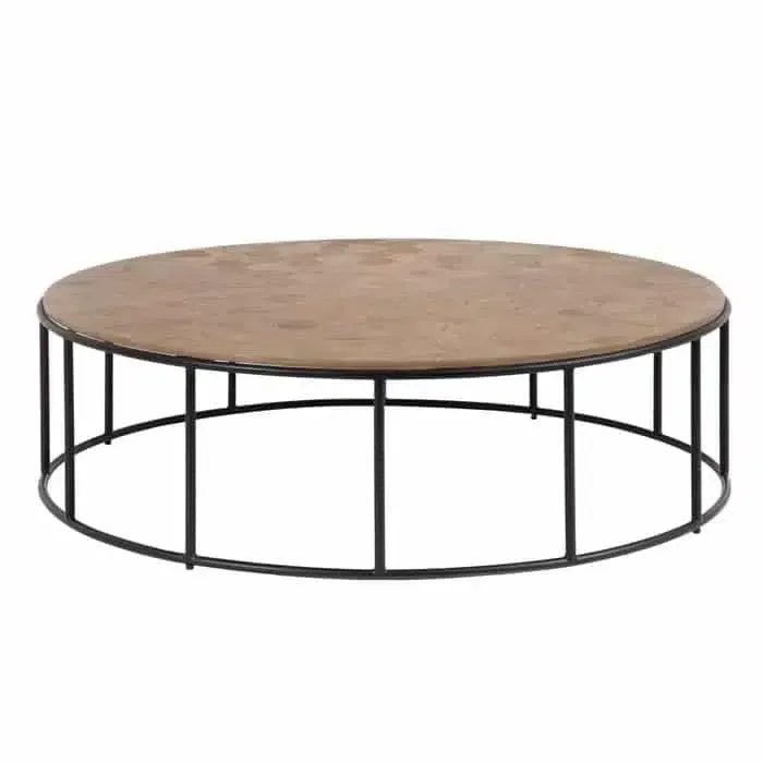 Mesa de centro redonda, en hierro acabado en negro y sobre en dm acabado en marrón. Estilo industrial. Medidas 120x120x35cm. Consultar disponibilidad y reserva.
