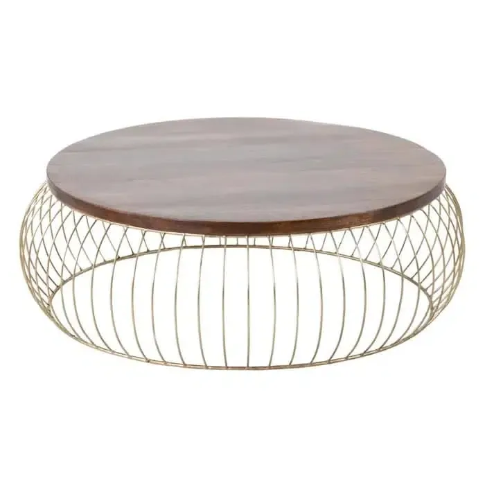 Mesa centro en madera de mango sobre estructura de hierro acabado en oro.