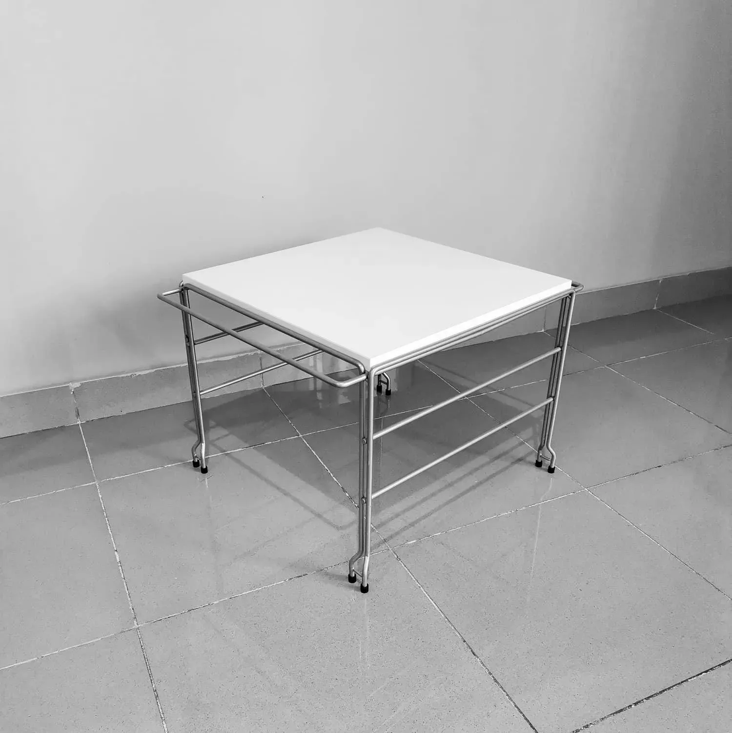 Mesa expositora estructura gris con tablero