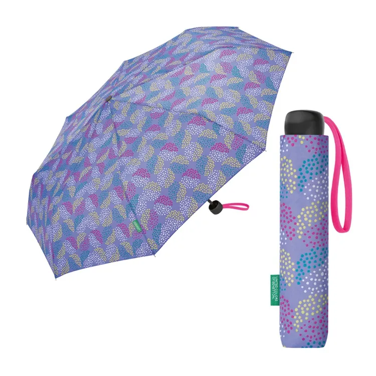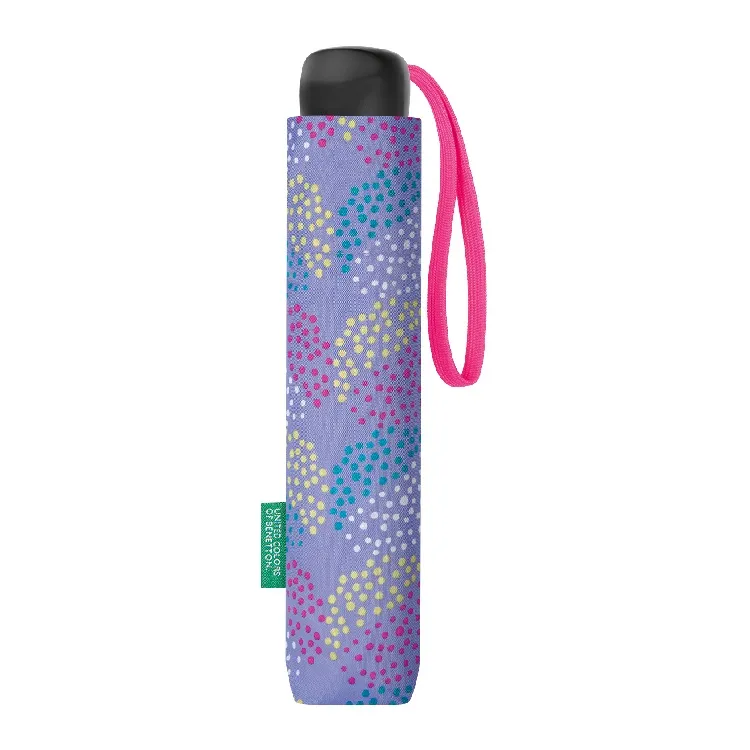 Paraguas Plegable Lila con Estampado Multicolor Benetton