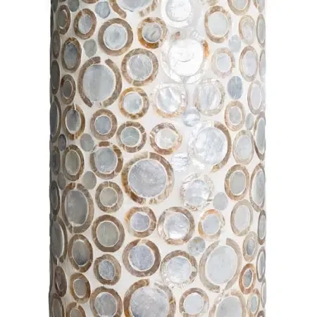 Paragüero en nácar crema con círculos marrones.Composición: mezcla de papel reciclado,polvo de piedra y resina.Medidas 20x20x57 cm.Estilo moderno.Entrada almacén Abril 2021