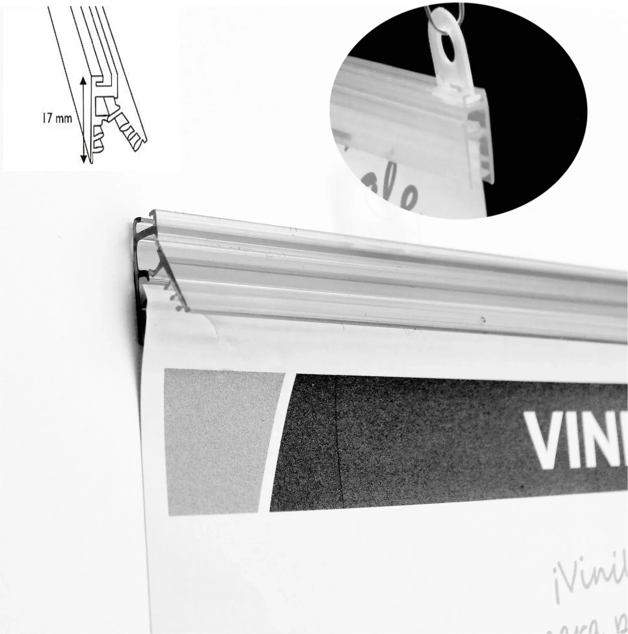 Perfil portacarteles con clip de cierre a presión, es un soporte para carteles en suspensión.