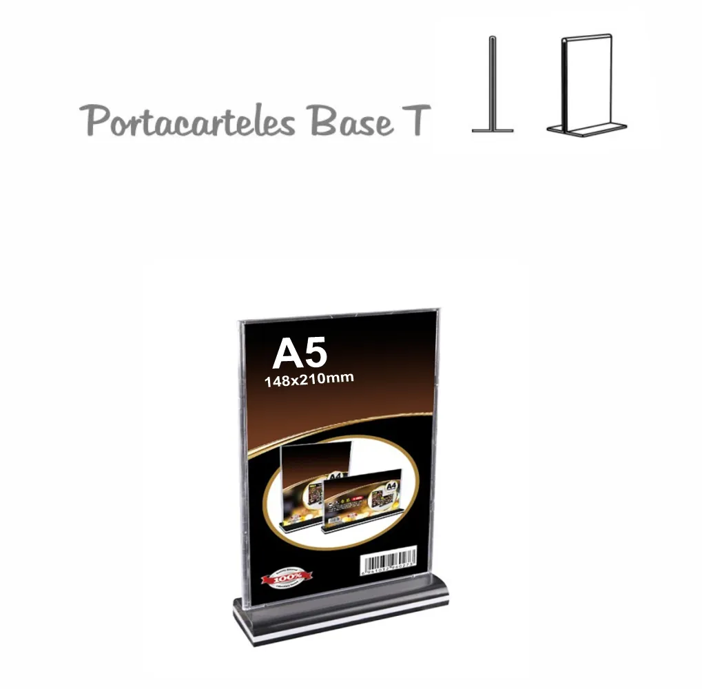 Portacartel poliestireno vertical base T A5 (paquete 3 uds)