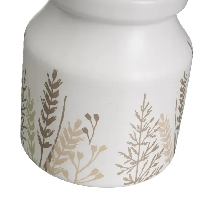 Da a tu cocina un aire vintage con nuestro soporte de utensilios.Fabricado en cerámica blanca stoneware con detalle de ramas en tonos marrones y verdes.