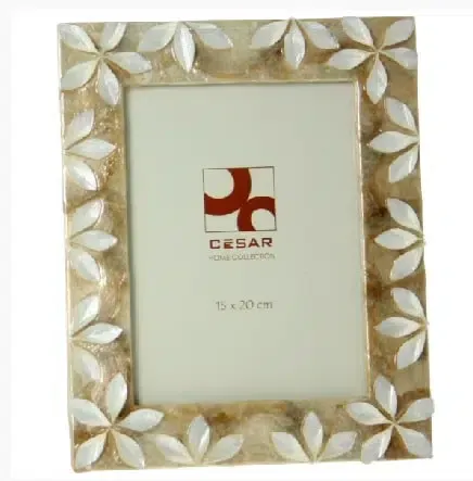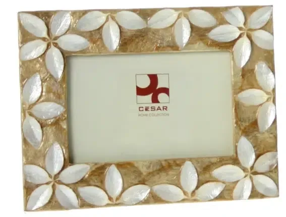 Portafotos en nácar beige.Marco adornado con flores de nácar blanco en relieve.Posibilidad de posicionamiento en vertical u horizontal.Estilo clásico.Medidas interiores 20×25.Disponibilidad de otros artículos de la colección.