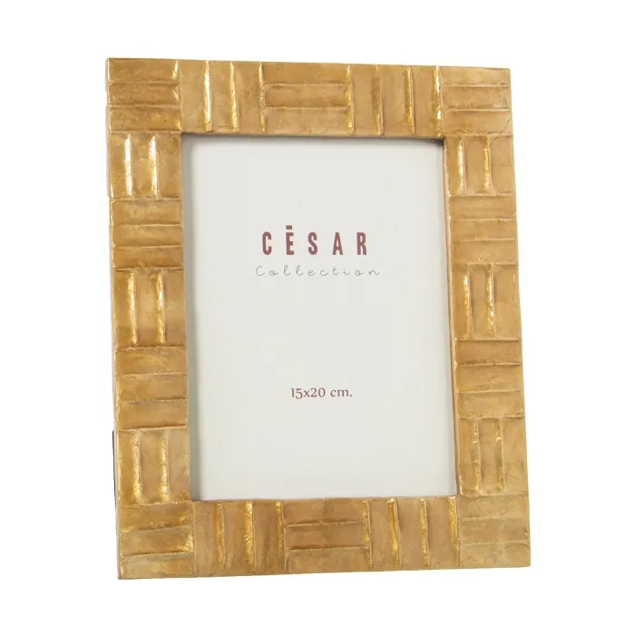 Portafotos en nácar tostado con líneas paralelas grabadas en el marco.