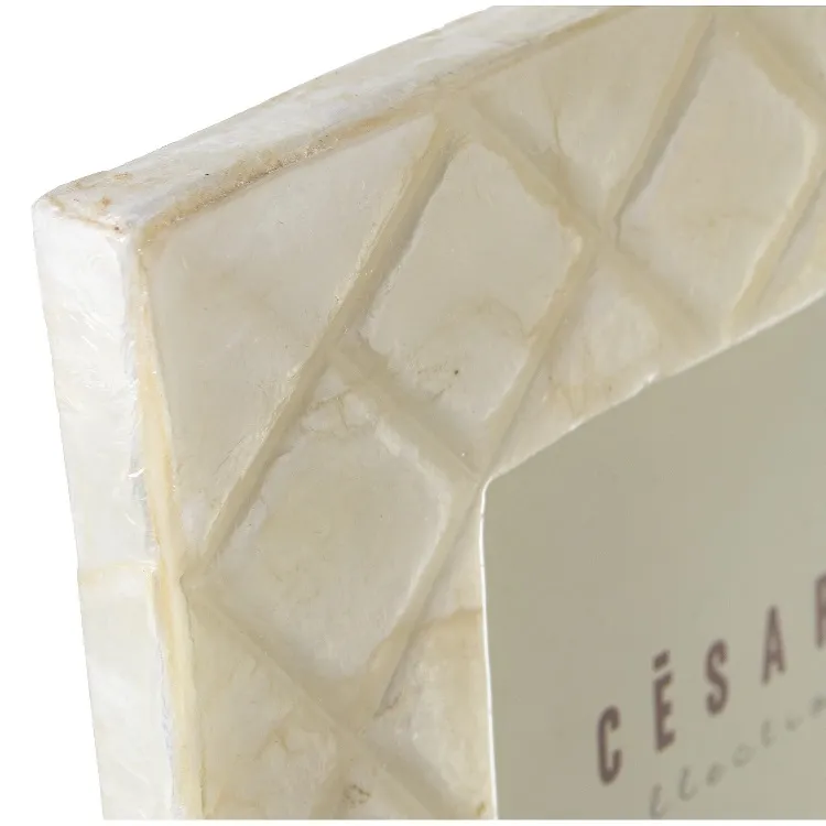 Portafotos en nácar blanco con detalle de rombos grabados.Estilo clásico.