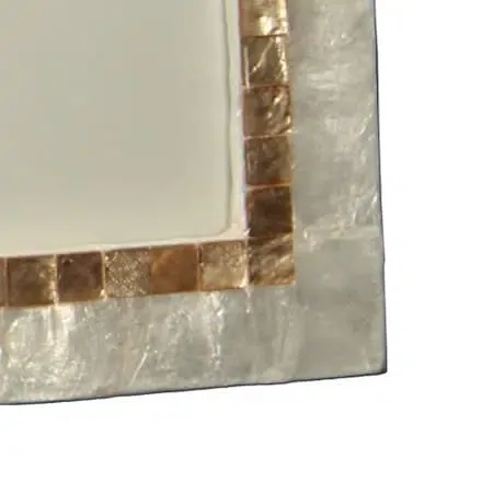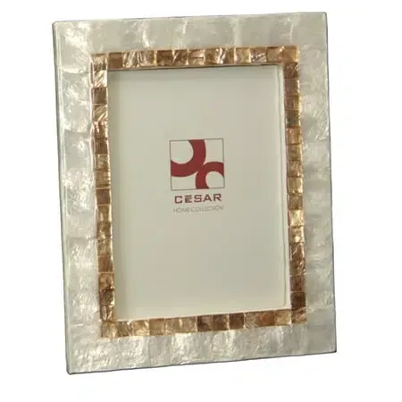 Portafotos en nácar blanco. Marco adornado con filo en nácar beige. Estilo clásico