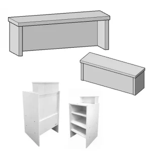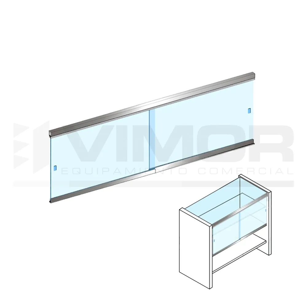 Juego de puertas correderas en cristal con guías de aluminio para mostrador de 100cm.