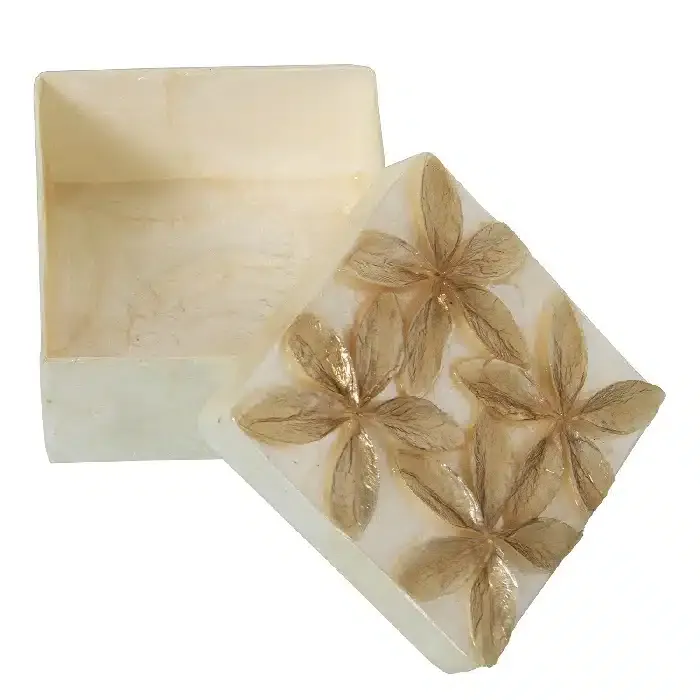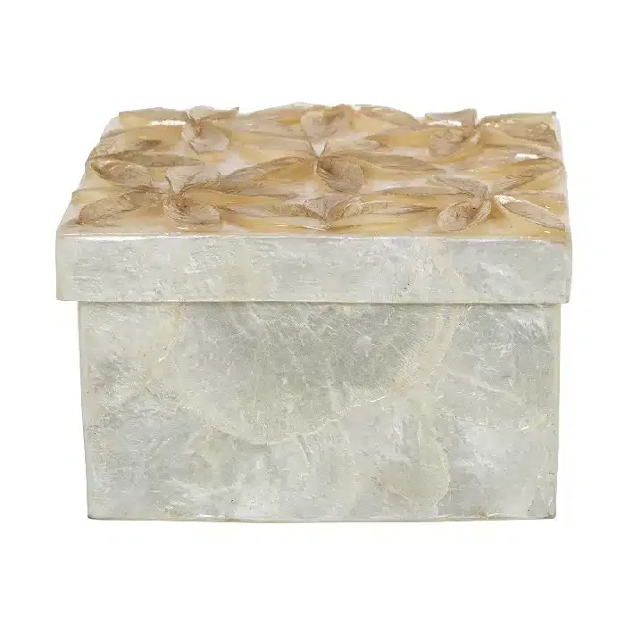 Set 2 Cajas Nácar Blanco Flor Relieve Bitono (13x13x8cm)