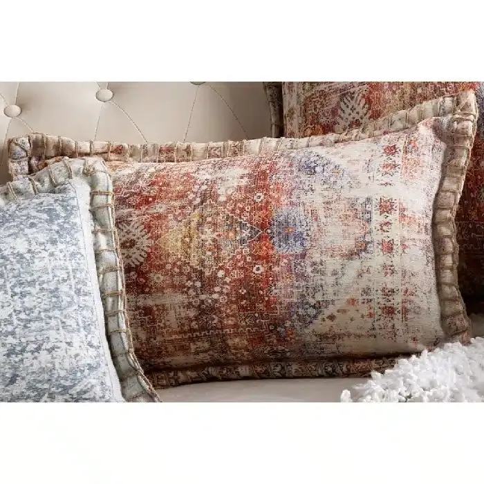 Set 2 Cojines Estampado Étnico Desgastados Granates (45×45 cm)