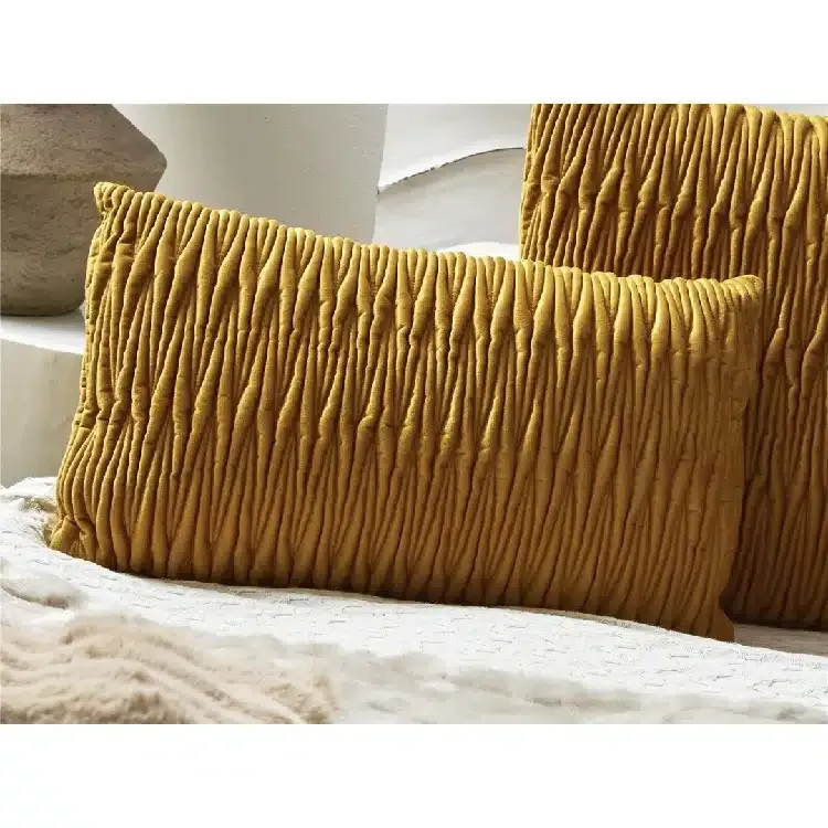 Set 2 Cojines Terciopelo Mostaza Pliegues (45x30cm)