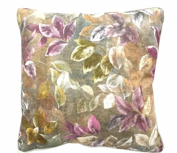 Realizados en tejido de suave terciopelo con un elegante estampado de flores en tonos azules y verdes. Composición 100% poliéster. Relleno 100%poliéster. Instrucciones de lavado: temperatura máxima 30º.No lejía ni secadora. Cierre de cremallera.
