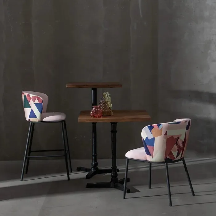 Sé el primero en valorar “Set 2 Sillas Terciopelo Rosa Estampado Abstracto Multicolor, Linz(58x52x77cm)”