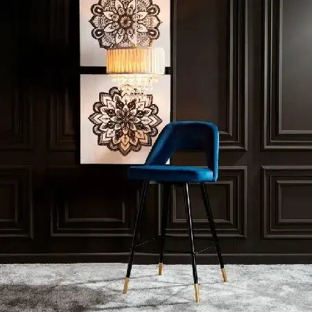 Set 2 taburetes metal-tejido azul moderno(43x47x105cm)