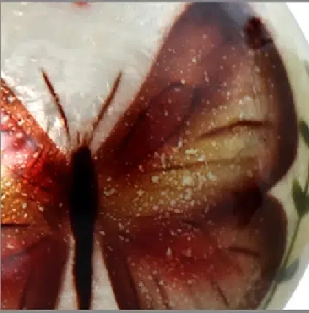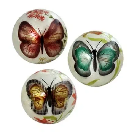 Set de tres bolas en nácar beige con dibujos de mariposas.Medidas 10cm D.Estilo vintage.Consultar venta individual.
