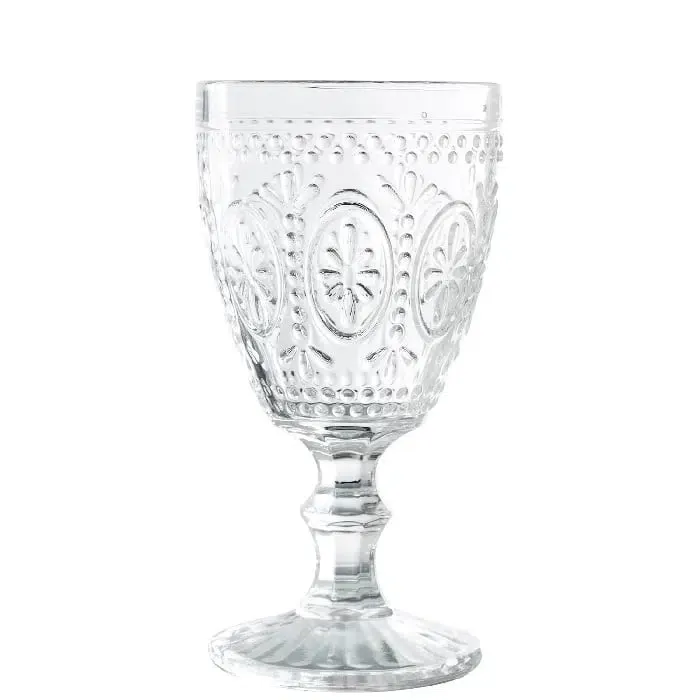 Set 6 Copas Cristal Flor Grabada Romántico (9dx17cm)