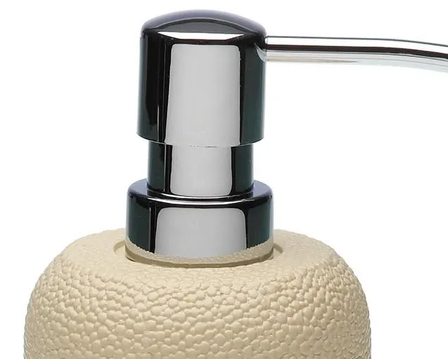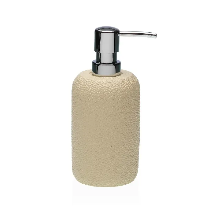 Set Baño Dosificador/Vaso Resina Beige Relieve (7,5dx17cm)
