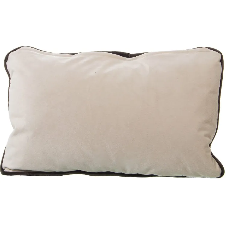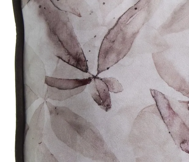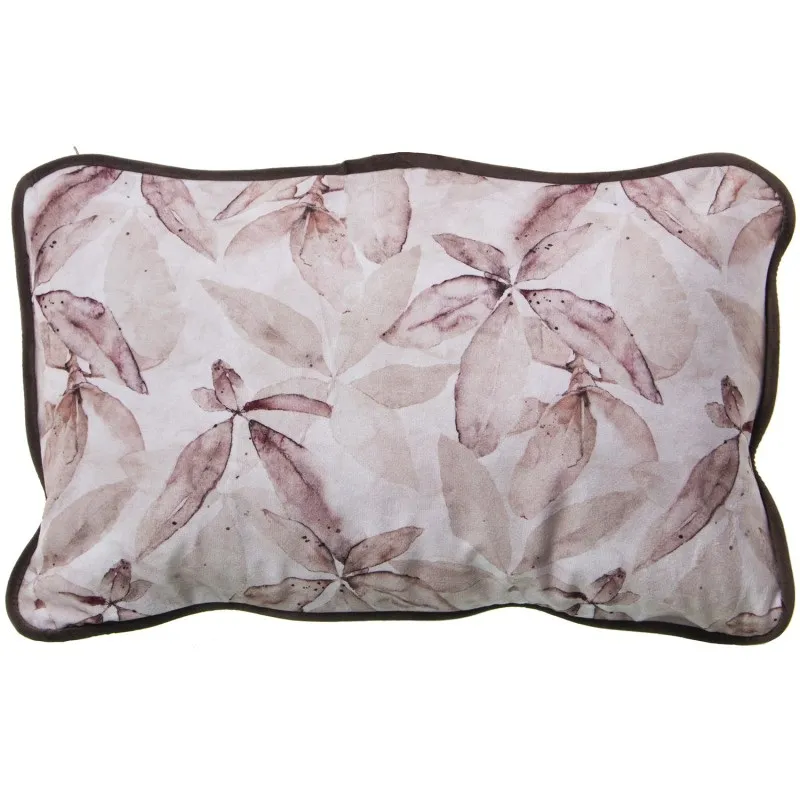 Set 2 cojines rectangulares en terciopelo beige con estampado de hojas en color piedra.