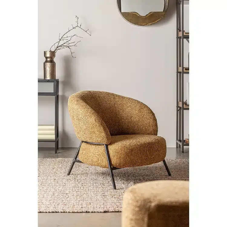 Sé el primero en valorar “Sillón Redondo Chenilla Ocre Bard, Contemporáneo (85x80x72 cm)”