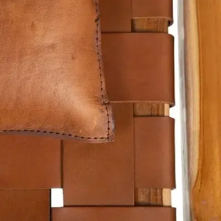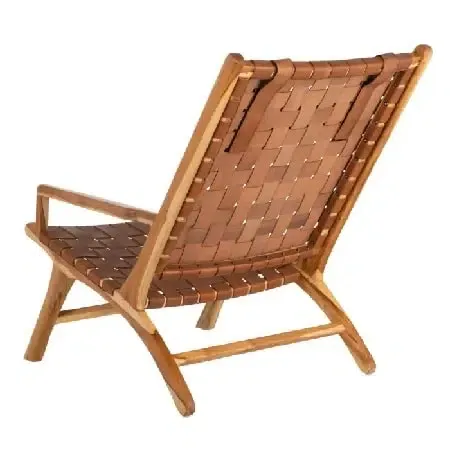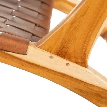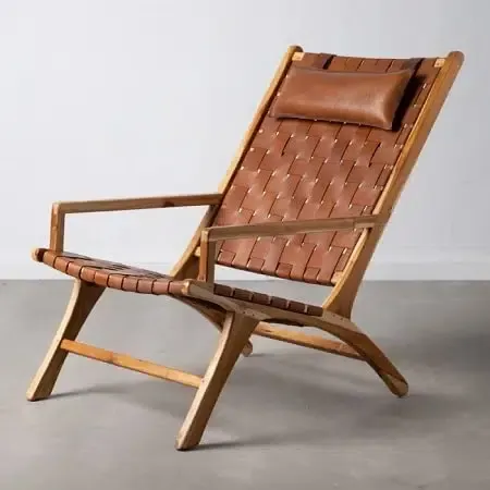Sillón teka-piel natural-marrón trenzado colonial(66x97x90cm)