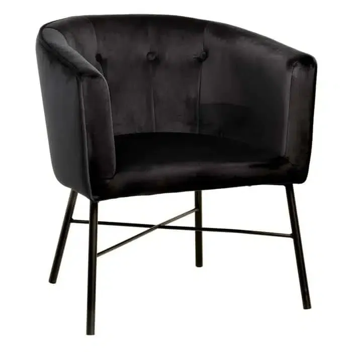 Sillón terciopelo negro Bloom, vintage (69x60x75 cm)